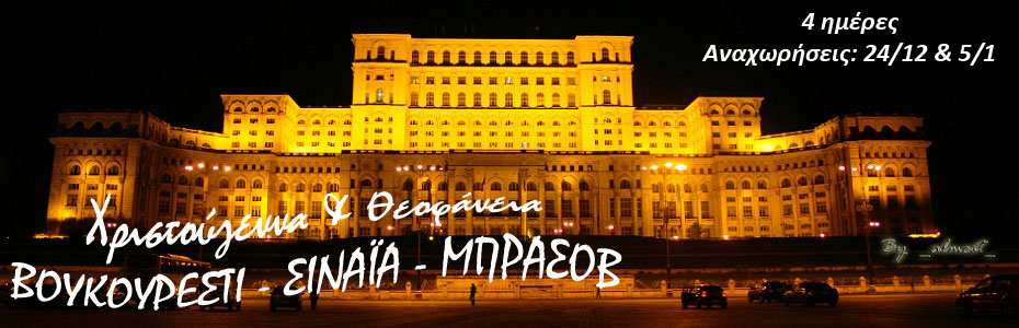 Ταξιδέψτε στο Βουκουρέστι Σινάια Πέλες Μπρασόβ Χριστούγεννα στην πρωτεύουσα της Ρουμανίας, μιας πόλης που εξελίσσεται με γοργούς ρυθμούς και ξαναβρίσκει την αίγλη του παρελθόντος όταν την αποκαλούσαν «το Παρίσι των Βαλκανίων». Το Βουκουρέστι είναι μια σύγχρονη μητρόπολη, περίπου πεντακοσίων ετών, με πλούσια ιστορία, έντονο παρόν και πολλά υποσχόμενο μέλλον. Ενδιαφέροντα μουσεία, αριστοκρατικά κτίρια, κομψά ξενοδοχεία και ατμοσφαιρικά εστιατόρια συνθέτουν την εικόνα της πόλης και σε συνδυασμό με την γραφική πόλη του Μπρασόβ χτισμένη τον 13o αιώνα από τους Τεύτονες ιππότες εξασφαλίζουν μια ολοκληρωμένη ταξιδιωτική εμπειρία.